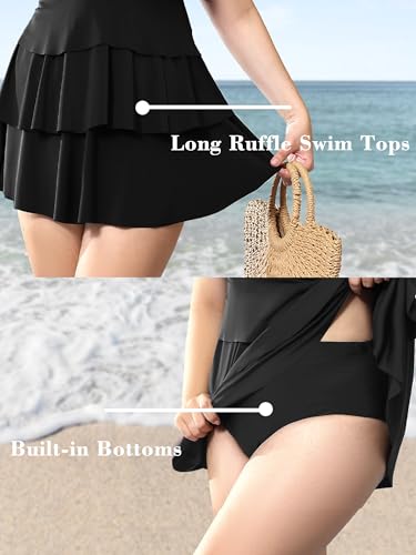 Plus Size Tankinis Ruffle Swim Top Tummy Control Swimsuits Two Piece Bathing Suits Swim Dress with Briefs