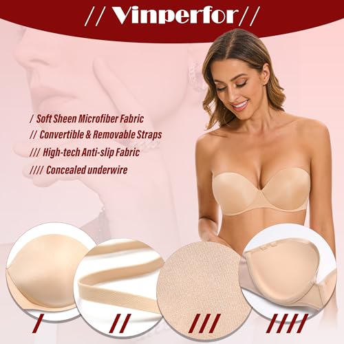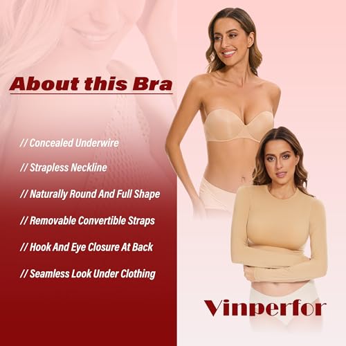 Fabric type: 84% Nylon, 16% SpandexCare instructions: Hand Wash OnlyOrigin: ImportedClosure type: Hook & EyeA STRAPLESS CONCEALED UNDERWIRE BRA FOR EVERY OUTFIT- Comfy Padded Cups design perfectly contours to your curves, making this bra versatile for any occasion. It functions flawlessly as a halter bras, criss-cross back bras, no-show bras, convertible bra, multiway bra, strapless bra, bandeau Bra,invisible bras, seamless bras, or everyday bras. An essential bra for low back tops, backless dresses,evening gown, daily,wedding and other special events.NO-SLIP AND PLUNGE NECKLINES DESIGN- The strapless bra features upgraded anti-slip strips on the sides, ensuring a lighter, more plush, seamless, snug, and breathable fit.MULTIWAY CONVERTIBLE STRAPLESS BRA - Enjoy the ultimate flexibility with removable and adjustable straps that let you customize your look. Easily rearrange them to suit different clothing styles and needs, making this bra effortlessly adaptable to any occasion.CARE INSTRUCTIONS - Hand Wash Cold with Like Colors. Avoid Bleaching, Tumble Drying, Ironing, and Dry Cleaning.DESIGNED FOR A SNUG FIT- If you are Between Sizes, We Recommend Sizing up One Band Size. Perfect for everyday use. premium materials and excellent craftsmanship ensure long-lasting durability.