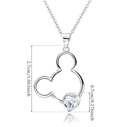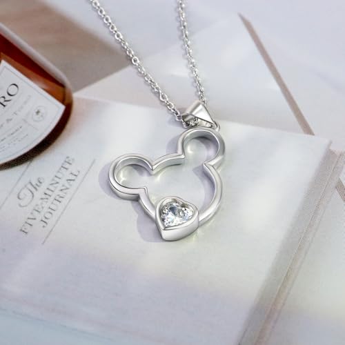 Generic Sterling Silver Cute Mouse Pendant Necklace for Girls, Teens, Women - Heart-Shaped Cubic Zirconia, Adjustable, Gift for Christmas, Daughter