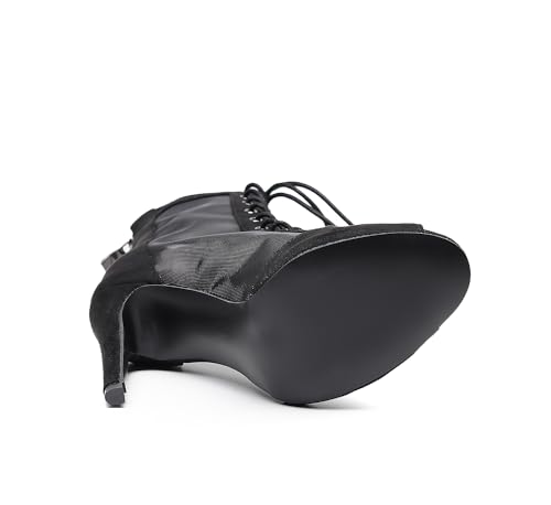 Women's Sexy Stilettos High Heel 3.5" Dance Heels Fashion Mesh Dancing Boots Sexy Lace Up Ankle Peep Toe Dance Booties