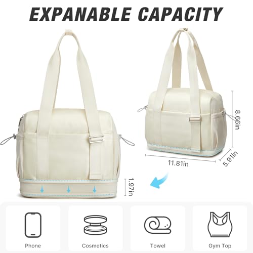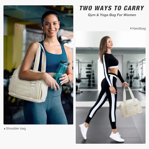 G4Free Mini Gym Bag for Women, Small Duffle Bag with Wet Pocket and Detachable Strap,Lightweight Gym Bag for Workout/Sport/Travel(BEIGE)