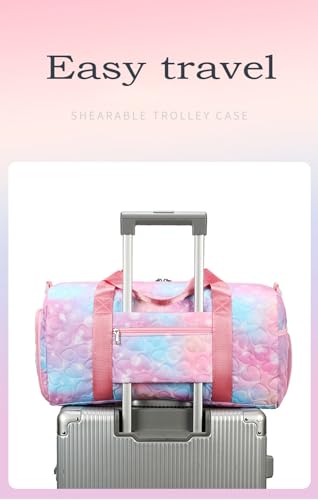 Girls Dance Bag with Shoe Compartments,Gymnastics Bag Overnight Weekender Bag Teen Gym Bag Travel Duffle Sleepover Carry On Bag (Purple)