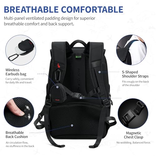 • MULTI-PURPOSE LAPTOP BACKPACKS: With top-grade polyester fabric, practical luggage strap design, removable headphone pocket, shoulder strap for hanging glasses, and hidden security pocket and so on, this travel laptop backpack is the impeccable companion for your business trips, weekend trips and daily commute, also is an ideal gift for men, women, or graduation ceremonies