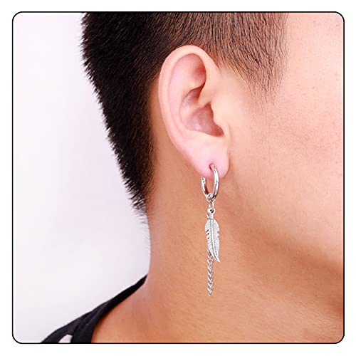 More information about Punk Rock Stainless Steel Long Chain Earrings Feather Huggie Hinged Hoop Earrings,2PCS