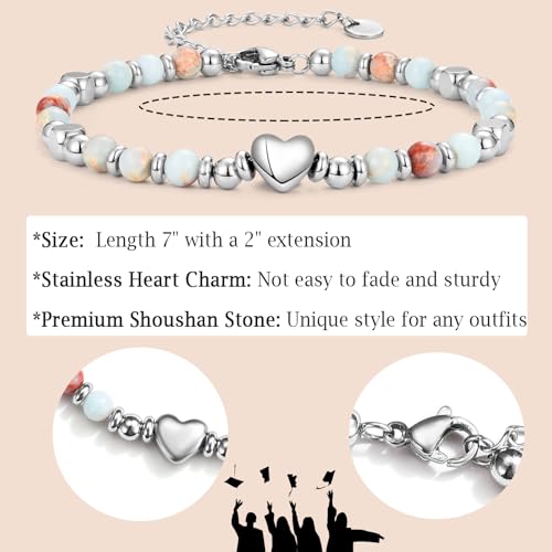 Material: StoneMetal type: Stainless SteelClasp type: Lobster ClawChain type: Bead ChainGem type: No gemstoneItem type name: BraceletsGraduation Gifts for Girls: Celebrate the graduation with these graduation bracelet for girls or teen girls, let them believe graduation is the beginning of a new adventure and full of confidence and energy for the future2025 Graduation Gifts: The grad gifts girl bracelet is special designed for teen girls, chic yet simple. Whether it is for daughter, granddaughter, niece, sister... Ideal delicate graduation gifts for her for senior, 5th, 8th or college graduation...Material: Girl graduation gifts bracelets are made of stainless heart charm and colored stone beads. sophisticated and unique design make it more charming to wear. Whether on work or on daily life, you'll be the most attractive and eye-catching oneCool Graduation Gifts: The graduation presents for girls bracelet length 7 with a 2 extension, easy to take on and off, fits for most wrists, suitable for long time wearAbout Us: Oavook values on every detail, committed to provide good experience to you. We will sincerely provide a satisfactory solution for you, if you have any doubts Perfect for everyday use. premium materials and excellent craftsmanship ensure long-lasting durability.