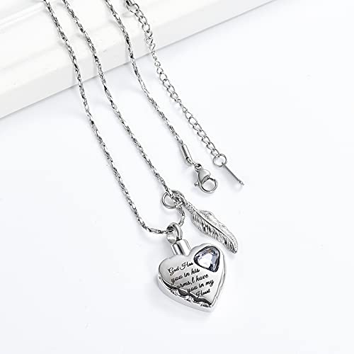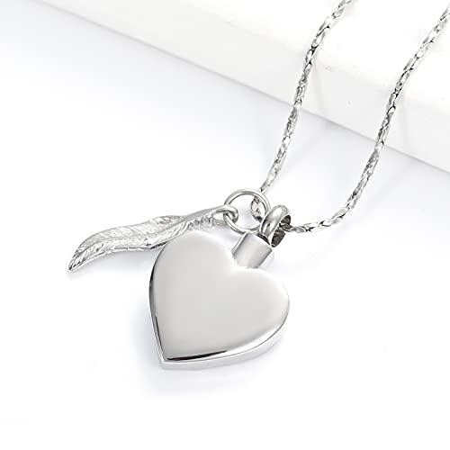 Imrsanl Heart Urn Necklace for Ashes with Angel Wings Feather Charm Cremation Jewelry Ashes Keepsake Urn Pendant Memorial Locket