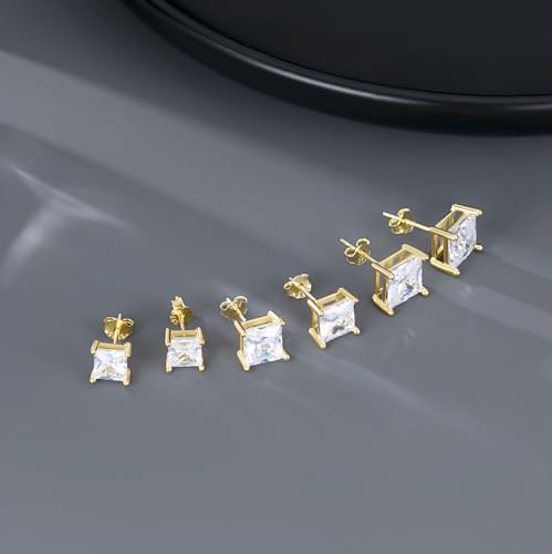 SLUYNZ 925 Sterling Silver CZ Stud Earrings for Women Teens Cut Square CZ Stud Earrings Simulated Diamond Earrings 3 Pairs