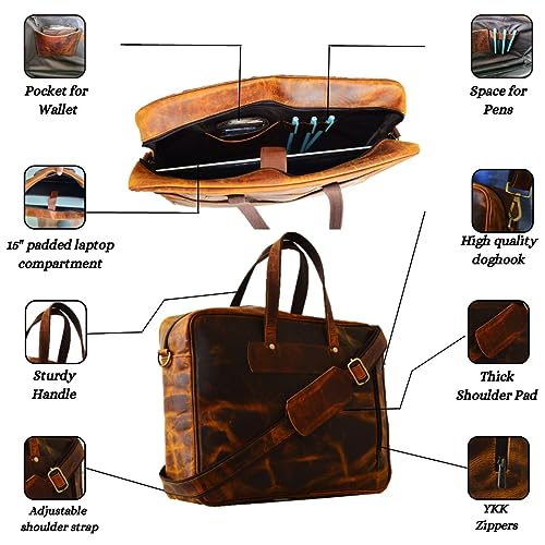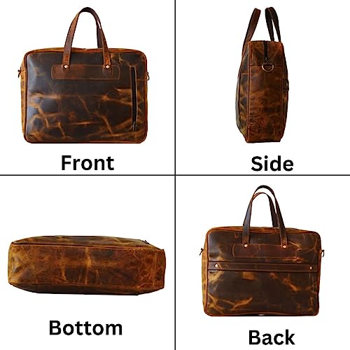 Fabric type: LeatherOrigin: ImportedClosure type: ZipperLining: LeatherDimension: 16-inch Length (60.64 cm) x 12-inch Height (30.48 cm) x 4-inch Width (10.16cm)Spacious and Versatile: The 16-inch leather messenger bag offers 1 main compartment ample space to accommodate your daily essentials and 1 Padded laptop compartment can easily fit 16-inch laptop. 1 Zipper inside the bag for important document.Genuine Quality Leather: Crafted from high-quality Buffalo leather, this computer bag combines durability and style. The leather not only enhances the bag's appearance but also improves its longevity, ensuring that it can withstand daily wear and tear while aging beautifully over time.Adjustable and Detachable: This Laptop Bag features an adjustable and detachable strap, providing you with multiple carrying options. You can wear it as a crossbody bag, shoulder bag, or remove the strap altogether to carry it by hand.Perfect Use: With a multipurpose use and a classy distressed Vintage inspired look which never goes out of style, this bag is a great present idea for Fatherβs Day, Birthdays, Valentines Day, Christmas, Graduation, Back to College or Any Occasion Which Calls for A Gift. Perfect for everyday use. superior materials and excellent craftsmanship ensure long-lasting durability.