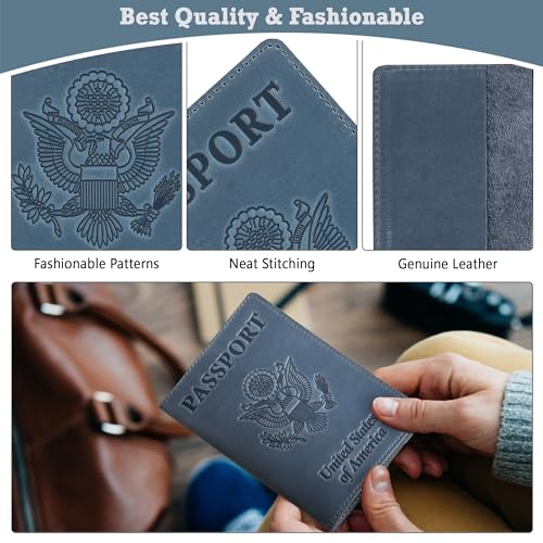 Brand: ShvigelColor: Light Blue VintageMaterial: Genuine Leather Passport CoverStyle: Us Passport CoverPattern: Solid100% GENUINE LEATHER PASSPORT COVER. This passport cover is crafted from high-quality cowhide leather and stitched with firm threads. Rigorous quality checks at every stage of manufacturing give us confidence that our passport holders will serve you for many years.PERFECT FOR US PASSPORT. This passport cover is designed to fit US Passport dimensions. Its actual size ensures a secure hold on the document. The dimensions of the Passport holder are 3.7 X 0.2 X 5.2 inches.MULTICOLOR TRAVEL HOLDER FOR MEN AND WOMEN. We offer the passport cover in several colors: brown, black, blue, maroon, green, pink, red, and yellow. This allows you to choose the best option for the entire family, suitable for both men and women.GOOD PRESENT FOR YOUR FRIENDS. Accompanied by a fabric pouch, this makes a delightful present for your loved ones and colleagues.premium PASSPORT COVER. We are confident in the quality of our product and provide a 3-year warranty and money-back promise with no questions asked. Perfect for everyday use. High quality materials and excellent craftsmanship ensure long-lasting durability.