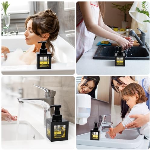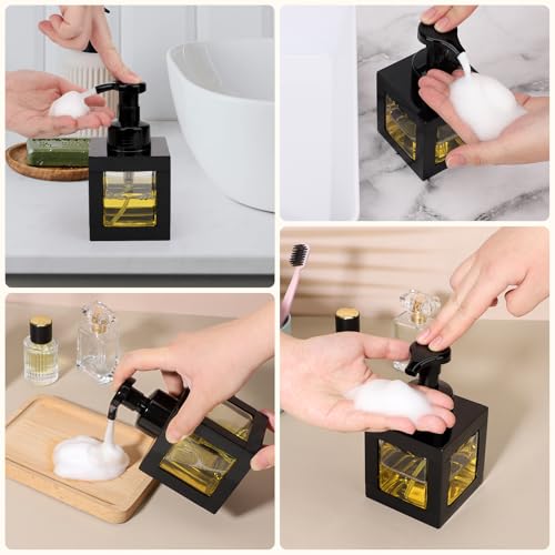 Segbeauty 11.84oz Black Foaming Soap Dispenser for Bathroom, 2pcs 350ml Empty Square Dish Soap Dispenser with Labels Pump for Kitchen, Refillable Hand Wash Foam Dispenser Soap Reusable Shampoo Bottles