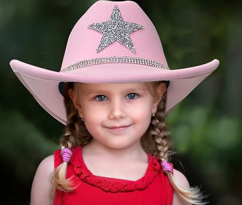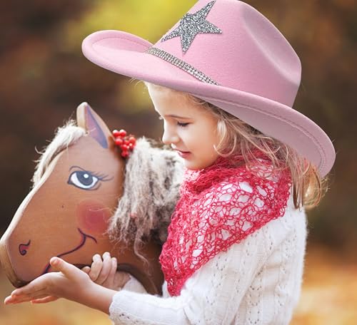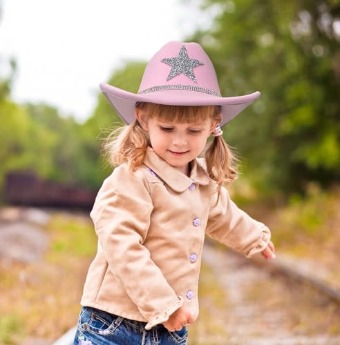Jastore Kids Girls Boys Western Cowboy Hat Felt Cowboy Themed Party Hats with Glitter Silver Star