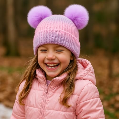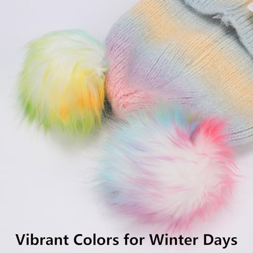 Little Girls Rainbow Pompom Beanies Hats Kids Winter Knitted Beanie Cap for Outdoor Snow Ski Skull Cap Age 3-8