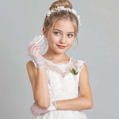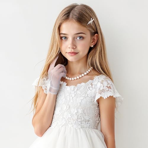 sizzling ! Girls Tea Party Gloves -Pearl Bow Tie Fish Net- Flower Girl Accessories for First Communion, Pageant,Wedding Halloween Cosplay Costume