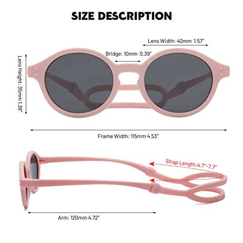 Pro Acme Cute Round Polarized Baby Sunglasses with TPEE Strap, Flexible Rubber for Toddler Newborn Ages 0-36 Months
