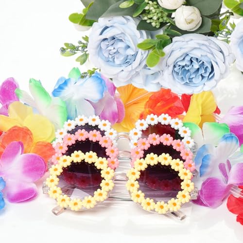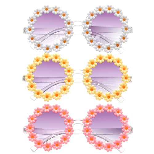 Round Daisy Flower Sunglasses for kids Round UV Protection Eyewear Outside Beach Cute Sunglasses Floral 3 Pairs