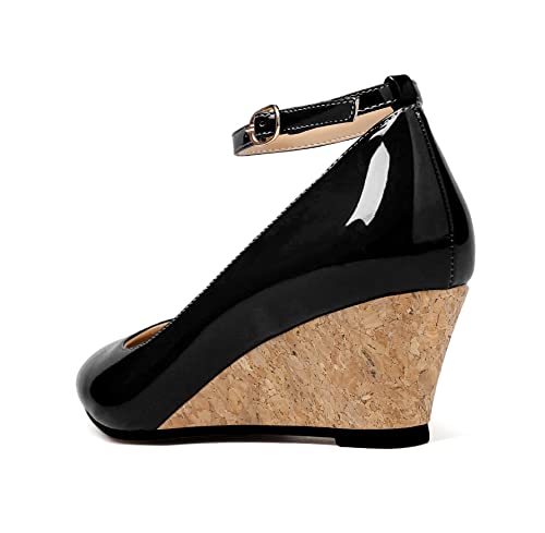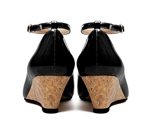 • 【Heel Height】5CM/2Inches. traditional mid heel ankle strap wedge heel for women.