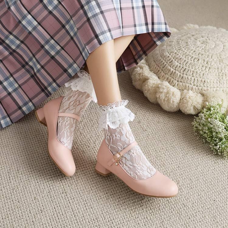 Women Mary Jane Pumps Round Toe Low Block Heels Heels with Belt Buckle