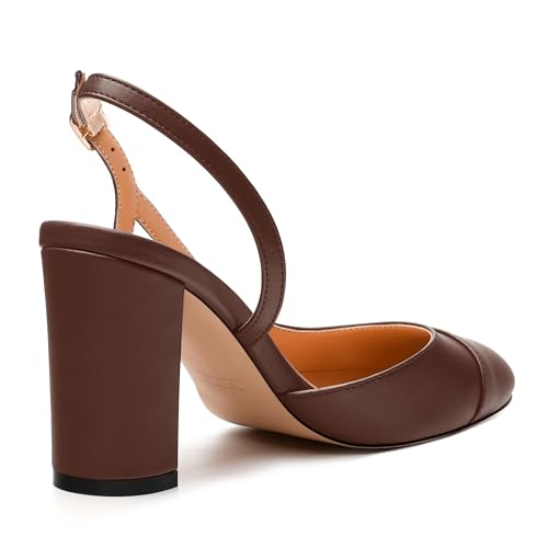 Slingback Heels for Women,Round Toe Chunky Heeled Pumps Ankle Strap Fashion Splicing Dress Shoes