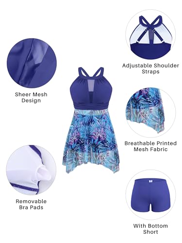 More information about NIeyook Plus Size Swimsuit for Women High Neck Tummy Control Bathing Suit 2 Piece Tankini with Shorts Flowvy Mesh Swimwear
