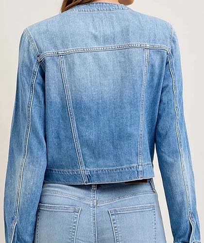 More information about Cropped Denim Jacket for Women Collarless Long Sleeve Jean Jackets with Snaps