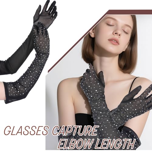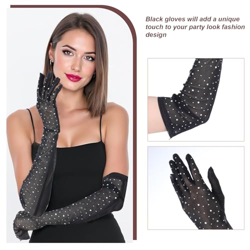 • Elegant design: Rhinestone gloves is black tulle, showing elegance and beauty, the long design to the elbow adds a touch of mystery to you, with rhinestones on the outside, which can make you stand out from the crowd
