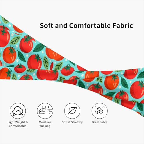 Boys Girls Sports Sweatbands, Multipurpose Long Head Band for Yoga Fitness Shower, Fashion Red Tomato Art Headwear Head Decor