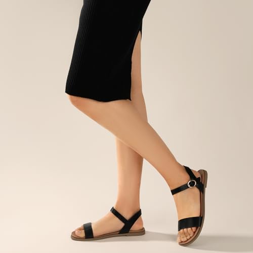 Sole material: RubberOuter material: Faux LeatherClosure type: BuckleFashion Sandals for Women 2025: Minimalist yet fashionable black flat sandal women featuring a wide strap across the vamp and an adjustable ankle strap for a secure fit.Walking sandals women offers subtle elevation with a comfortableWomens Sandals Comfortable Dressy: Versatile design that pairs effortlessly with casual attire such as a kirts, shorts, dresses, casual outfits, jeans, muscle tee and faded denim skirt, perfect for laid-back outings and travelSummer Sandals for Women: Beach sandals for woman crafted from leather upper material, ensuring durability and a sophisticated look. 5 inch heel height, ideal for everyday comfort and ease of wearFlat Sandals for Women Dressy: This beach flat sandals women is design for leisure, work, shopping, parties, wedding, proms, travel, beach, vacation outfits for women, walking, datings and other occasions, suitable for spring, summer and autumn wear. When you wear this womens fandals, you are the most striking in the audienceBest Gifts: This cute dressy sandals women is suitable for all foot shapes and can be used as an everyday shoe. Perfect for women from all ages and lifestyles. Womens flat sandals dressy are great gifts for girlfriend, wife, mommy, daughter and your loved Perfect for everyday use. superior materials and excellent craftsmanship ensure long-lasting durability.