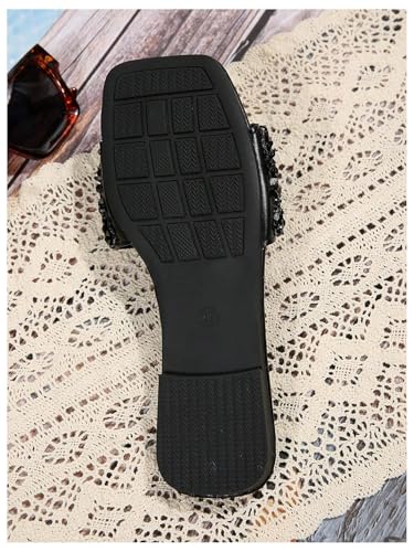 - Dressy Sandals, Summer Flat Sandals, Pearls Beaded, Slip on Shoes, Square Open Toe