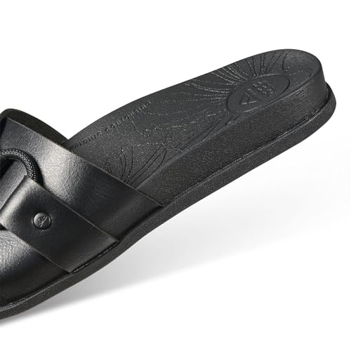 • SUPERIOR MATERIALS: Super silky unlined PVC at no charge vegan leather slide with faux raffia molded buckle and recycled hardware detail.