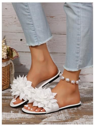 OYOANGLE Women's Floral Appliques Open Toe Flat Sandals pleasant Slip on Slide Sandal