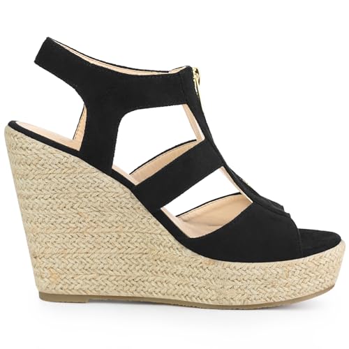 - Wedges Sandals for Women, Platform Wedge Heel Sandals, Espadrilles, Slingback, Open Toe, Front Zipper