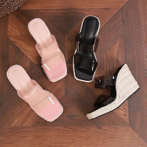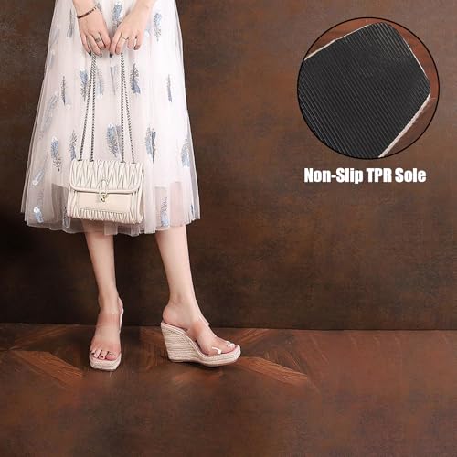 Women's Clear Band Wedge Platform Espadrille Sliders Sandals Vintage Transparent Strap Square Toe Slingback Slip-On Wedge Heeled Mules Slippers For Summer Dress Party Vacation
