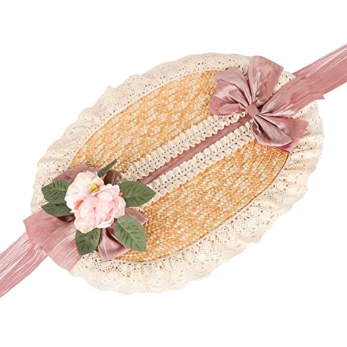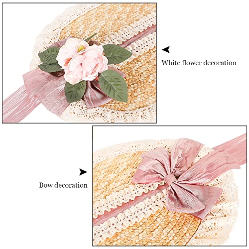 More information about Girls Women Victorian Straw Hats Tea Party Bows Costume Sun Hat with Lace Flower