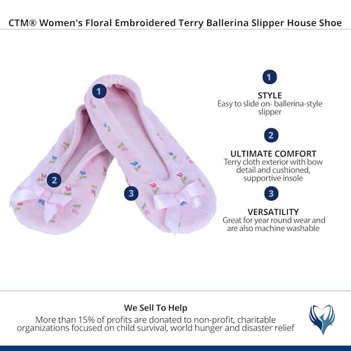 Why Choose CTM Women's Floral Embroidered Terry Ballerina Slipper House Shoe?
