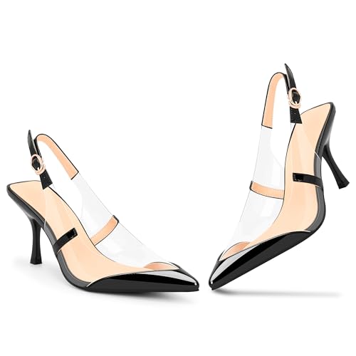 100FIXEO Women's Clear Slingbacks Stiletto High Heel Pointed Toe Pumps Sexy Dressy PVC Party Shoes