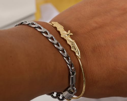 Material: MetalMetal type: CopperClasp type: No clasp typeChain type: Box ChainMaterial:Copper,Bat braceletBracelet D size:6.5cm(2.56inch)THE GIFT to your wife/mom/girlfriend/daughter/grandmother/best friend/ even yourself on St. Valentine's Day, Easter Christmas day,Birthday,Anniversary. Independence Day,Labor Day,Thanksgiving Day,New Year's Day and mother's day to celebrating those holiday. Your stuff will come packaged in a gift boxes, suitable for giving and safe keep. It is highly advised to wear solid gold or sterling silver jewelry if the one has sensitive skinSATISFACTION SERVICE: Questions Or any problems regarding the order will be answered within 24 hours,please feel free to contact sellerNote: avoid getting wet with water or other liquids, don't wear while exercise, bathing, sleeping, which can extend the service life ideal for everyday use. top-grade materials and excellent craftsmanship ensure long-lasting durability.