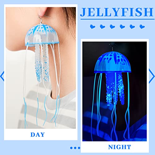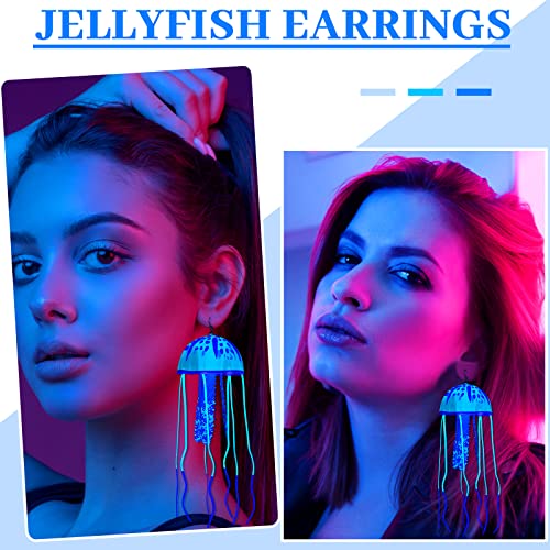 2 Pcs Glow Earrings Jellyfish for Summer Night Party Dangle Drop Weird Earrings Light up Glow in the Dark Christmas Party Decoration