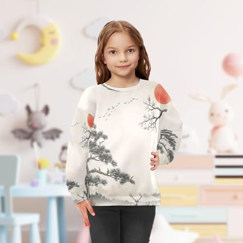 Youth Sweatshirts Long Sleeve gentle Ink Wash Painting Crewneck Pullover Sport Top Tee(5-10 Years)