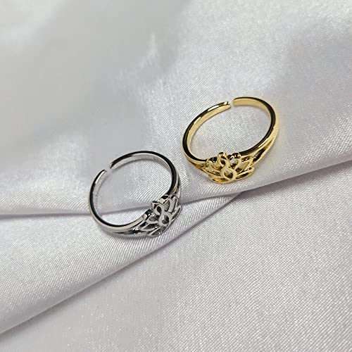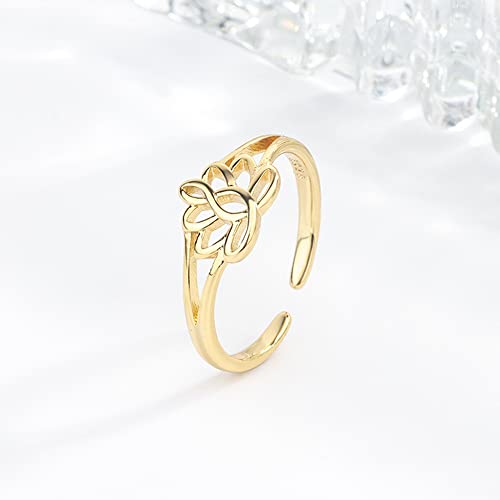 OIDIMS Lotus Flower Adjustable Ring for Women Sterling Silver Plated Comfort Fit Wedding Open Rings Stacking Finger Encouragement Yoga Spiritual Jewelry Delicate Everyday Ring for Mom Birthday