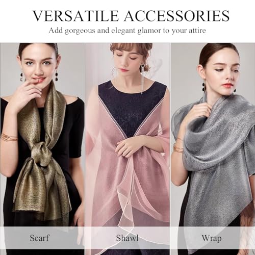 Organza Silk Scarf Women Sparkling Shawls And Wraps For Evening Dress Lightweight Sheer Stole Bridal Wedding Party