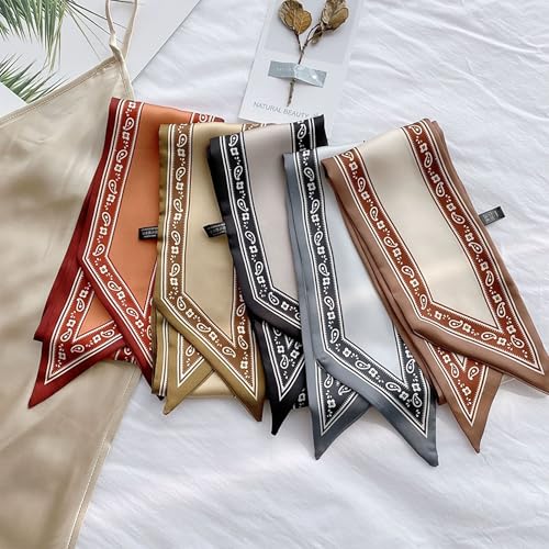 4 Pack Long Floral Skinny Scarf For Women,Headband Hair band Ribbon Handbag Women's Fashion Scarves