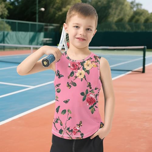 JUNZAN Aesthetic Rose sizzling Pink Children Athletic Tank Tops Sleeveless Teens Vest Loose Comfy Clothes for Running Hiking 3T