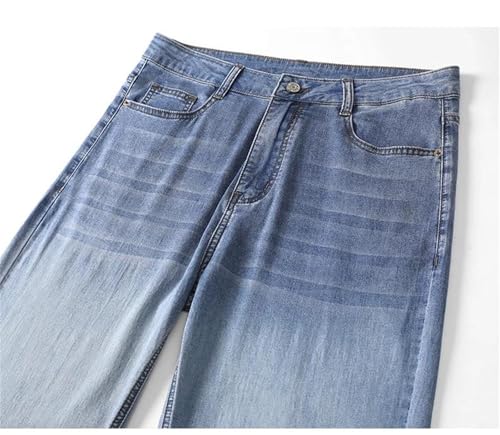 Men's Gradient Jeans Summer Smooth Loose Wide Leg Denim Pants Vintage Streetwear Thin Fashion Trousers