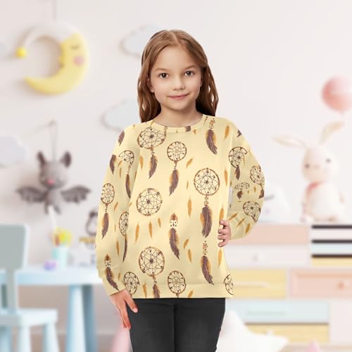 JUNZAN Western Dream Catchers Yellow Big Girls Pullover Hoodie Crewneck Outerwear for Kids Camping 4T