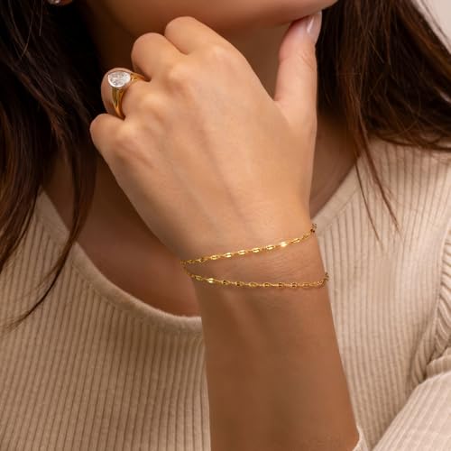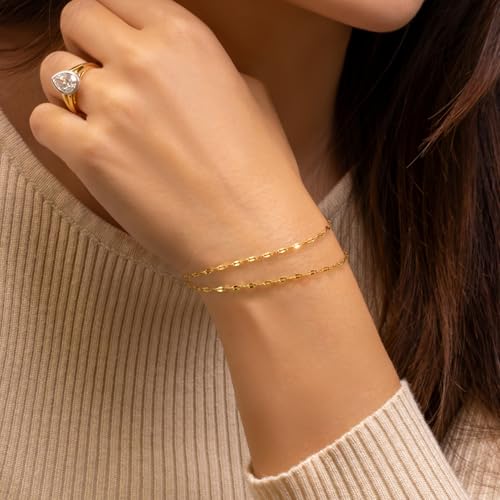 Material: 14kMetal type: 14kClasp type: Spring RingGem type: No gemstone[EFFORTLESS LAYERED LOOK] This gold plated bracelet features a double-layer flat mirror chain that instantly creates a chic layered effect. The distinct dual-chain structure of the layered bracelets for women's gold bracelets 14k gold bracelets for women adds visual effect, making your wrist look polished and fashion-forward[MUITIPE SIZES FOR A GREAT FIT] Available in 17cm, 19cm, and 21cm lengths, this 14k gold bracelets for women offers a tailored fit for various wrist sizes. Whether your wrist is slim or fuller, you can find the ideal size of the double chain bracelet for womens gold bracelet for a snug and comfortable wear[MIRROR SHINE FINISH] Crafted with a mirror-like surface, the 14k gold bracelet for women reflects light beautifully, creating a subtle yet luxurious glow. The reflective finish of the gold link bracelets for women gold adds a luminous touch to your every movement—turning everyday moments into style statements with this women's gold plated bracelets[TIMELESS INVESTMENT PIECE] This 14kt gold bracelets for womens gold bracelets' classic double-chain silhouette and sleek shine make the 14k gold chain bracelets for womens bracelets gold plated a long-lasting fashion essential. Wear the double layer bracelets for women now or five years from now; it will always belong in the style spotlight[CHOOSE YOUR FAVORITE WORK] We offer a wide range of options about 14k gold bracelets for women: single CZ bracelet, cross CZ bracelet, layered tile chain bracelet, and floral bracelet. No matter which style you like, there's a match for your personality. Discover your favorite gold bracelets today Perfect for everyday use. premium materials and excellent craftsmanship ensure long-lasting durability.