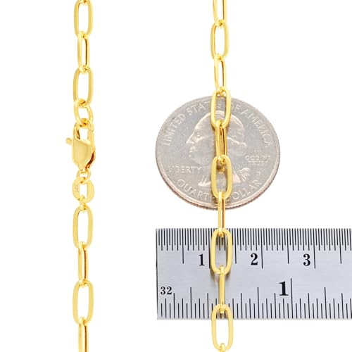 Nuragold 14k Real Yellow Gold Paperclip 4mm Elongated Cable Link Bracelet (7"-8") Italian Jewelry for Men & Women
