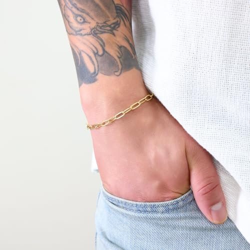 Item display length: 7 inchesMaterial: Yellow GoldMetal type: Yellow GoldClasp type: LobsterChain type: Cable ChainMetal weight: 2.4 gREAL 14K GOLD: This brand new bracelet is Genuine 14k Yellow Gold, it is NOT Plated, NOT Filled, NOT Overlayed; Professionally tested and STAMPED 14K for gold purity, therefore both highly durable and hypoallergenicCHAIN SPECS: Width: 4mm | Length: 7inches | Approximate Weight: 2.4g | Hollow Links | The chain fastens with a secure lobster clasp that is easy to put on and take offMADE IN ITALY: This premium chain will not tarnish, fade, or discolor as it is crafted with Pure 14K Gold and Made in Italy with the highest manufacturing standards; Each link is finely hand polished to give the chain that timeless, bright 14k gold shine that will never tug your hair, clothes, or skinVERSATILE: The classic paperclip chain is known to be both timeless and versatile, perfectly complementing professional, formal, or casual outfits by itself or with your favorite charm; Suitable for both men and womenPACKAGING: This chain is carefully inspected and packed in our genuine Nuragold gift boxes making it a perfect gift for family and friends for all occassions such as birthdays, anniversaries, christmas, valentines day, or any holiday; Total Satisfaction Guaranteed with our World Class Customer Service Perfect for everyday use. High quality materials and excellent craftsmanship ensure long-lasting durability.