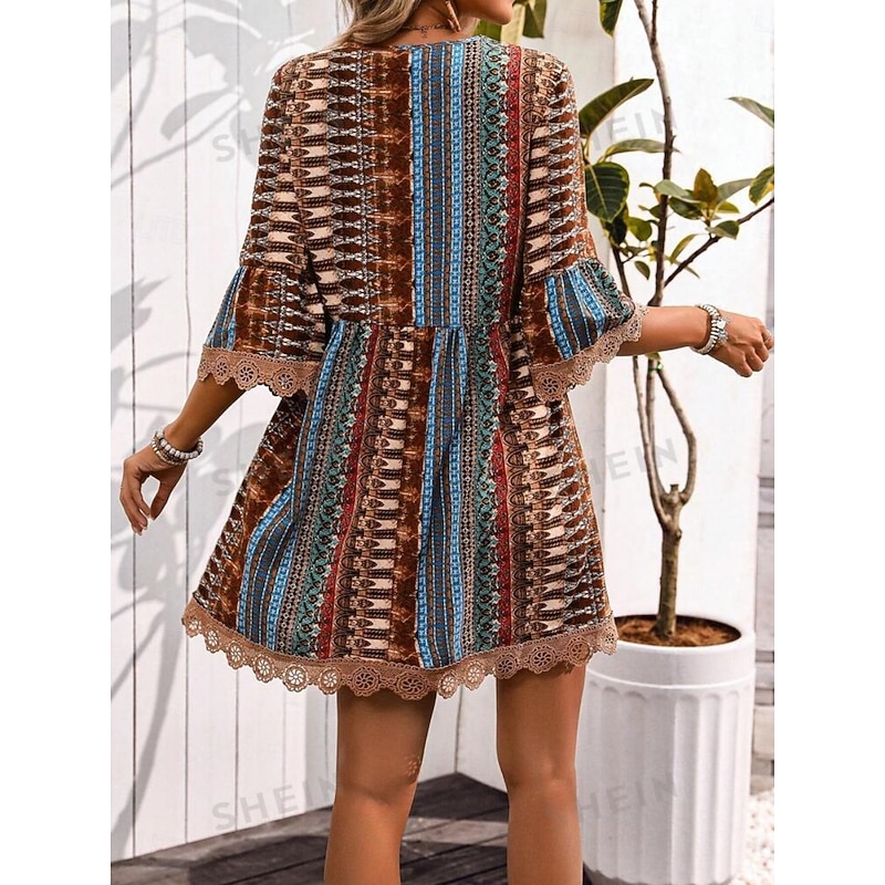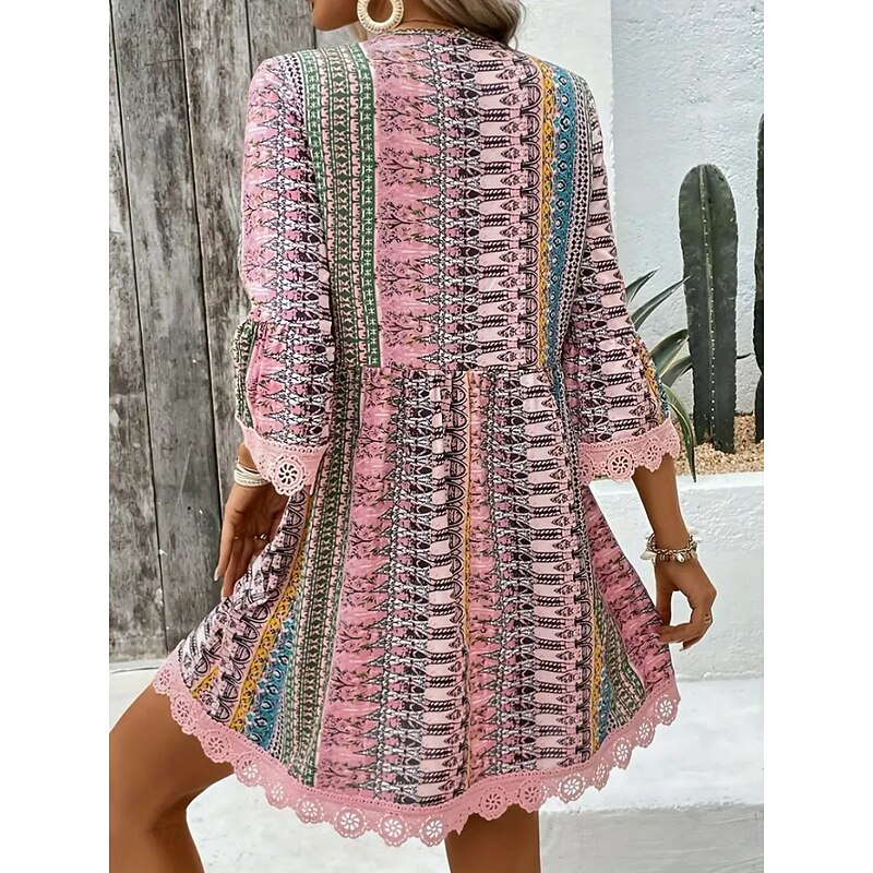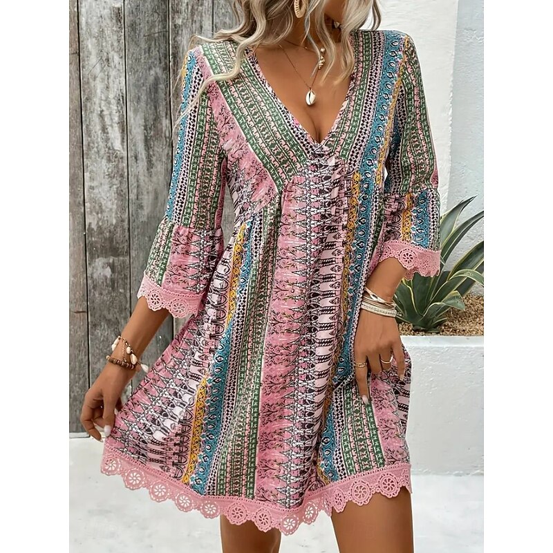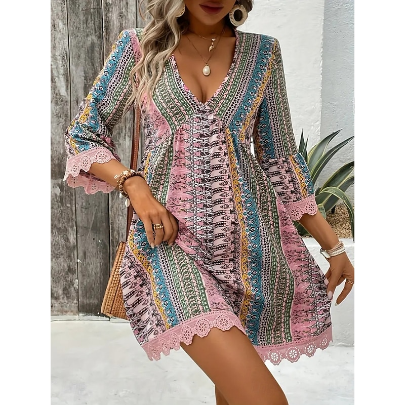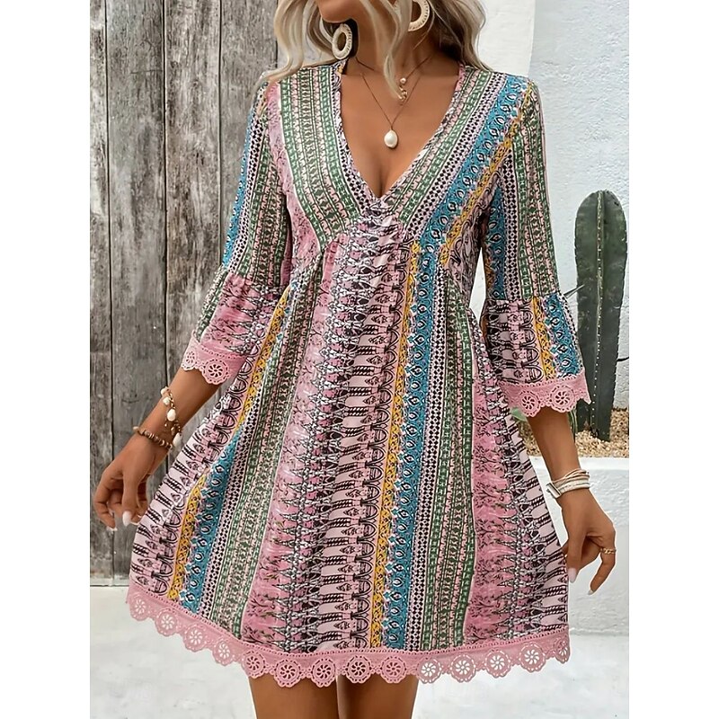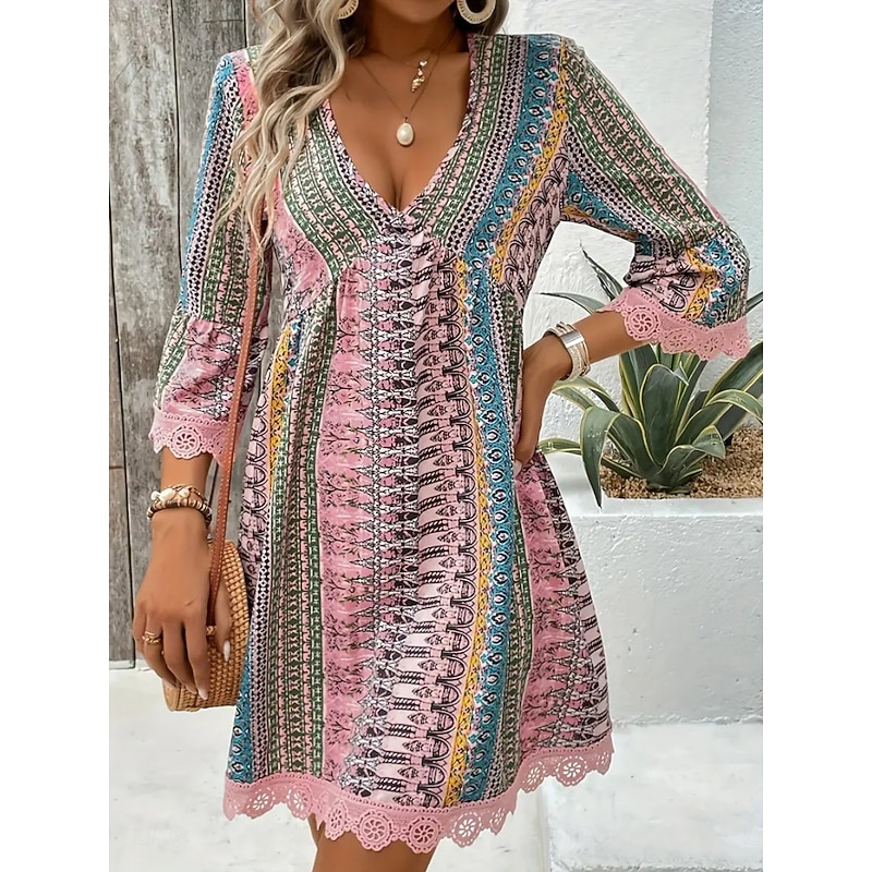 This Women's Mini Dress Petite Dress Casual Dress Boho Dress modern Casual Vacation Daily Regular Fit Graphic Geometric 3/4 Length Sleeve V Neck Pink Red Blue Summer combines elegant design with practical functionality. Every detail has been carefully considered to ensure you get the best possible experience. The top-grade construction means this product will serve you well for years to come.