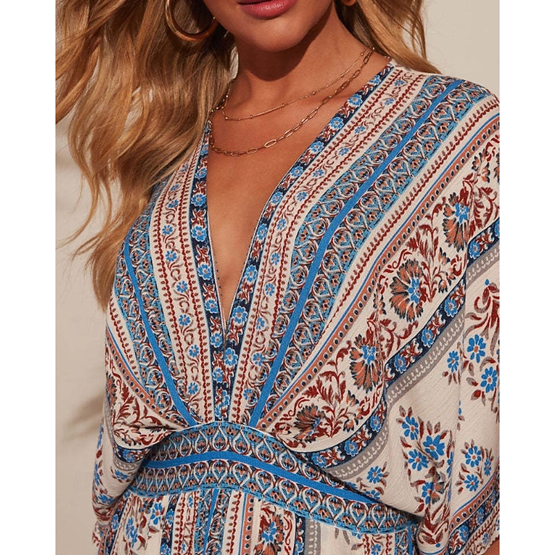 Why Choose Women's Swimwear Cover Up Swimsuit Tropical Beach Wear Flower V Neck Short Sleeves Bathing Suits?