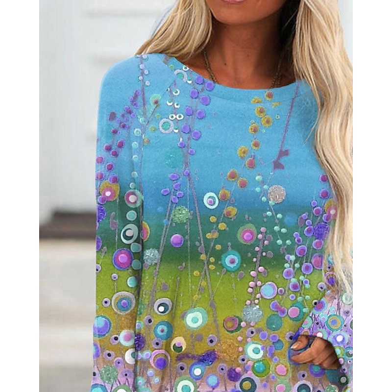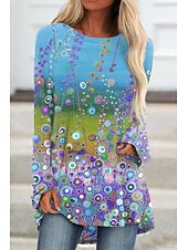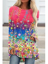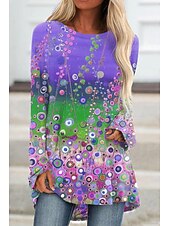 Women's Plus Size T Shirt Tunic Shirts Floral Graphic 3D Tunic Basic Neon & Bright Long Sleeve Round Neck Long Tops Daily Weekend Print Pink Blue Purple Fall & Winter
